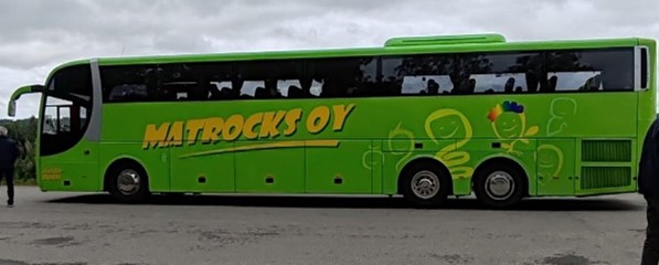 Linja-autoon jaetaan eväspussit jokaiselle osallistujalle
